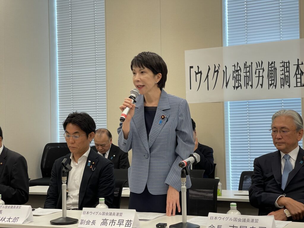 日本ウイグル国会議員連盟の副会長を務める高市早苗氏は「ウイグルの方々だけではなく、日本の国益を考える上でも重要である」と語った。また、「個人的に米国法(ウイグル強制労働防止法)のような形の法律があった方がいい」と述べた。