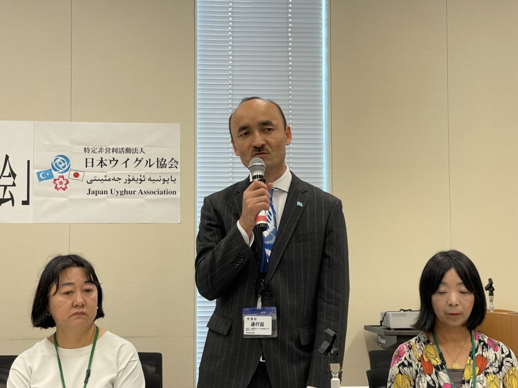 記者会見には、日本ウイグル協会のレテプ・アフメット会長やHRNの伊藤和子副理事長、自民党の高市早苗前経済安全保障担当相、古屋圭司元国家公安委員長らが出席した。