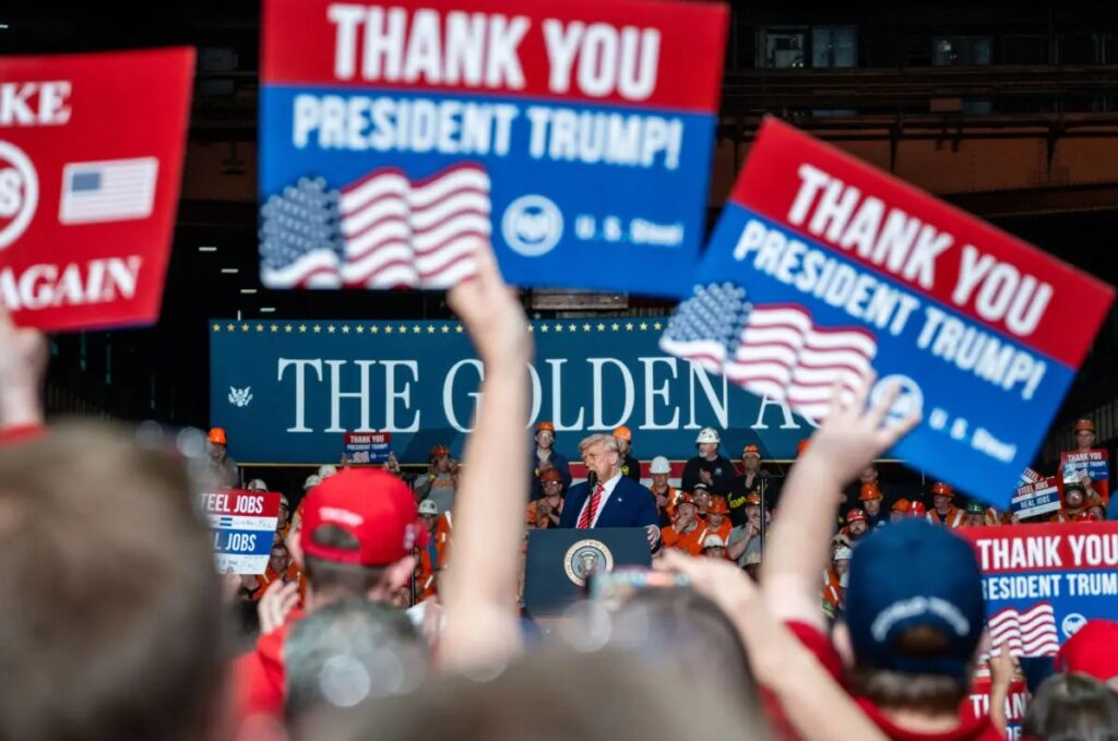 この発表は、アメリカ鉄鋼会社(U.S. Steel)が所有するモンバレー地区のIrvin Works工場で行われ、数千人の鉄鋼労働者が集まった。トランプ大統領は「あなたたちこそがこの国を築き上げた」と、現場の労働者たちに感謝の意を表した。
