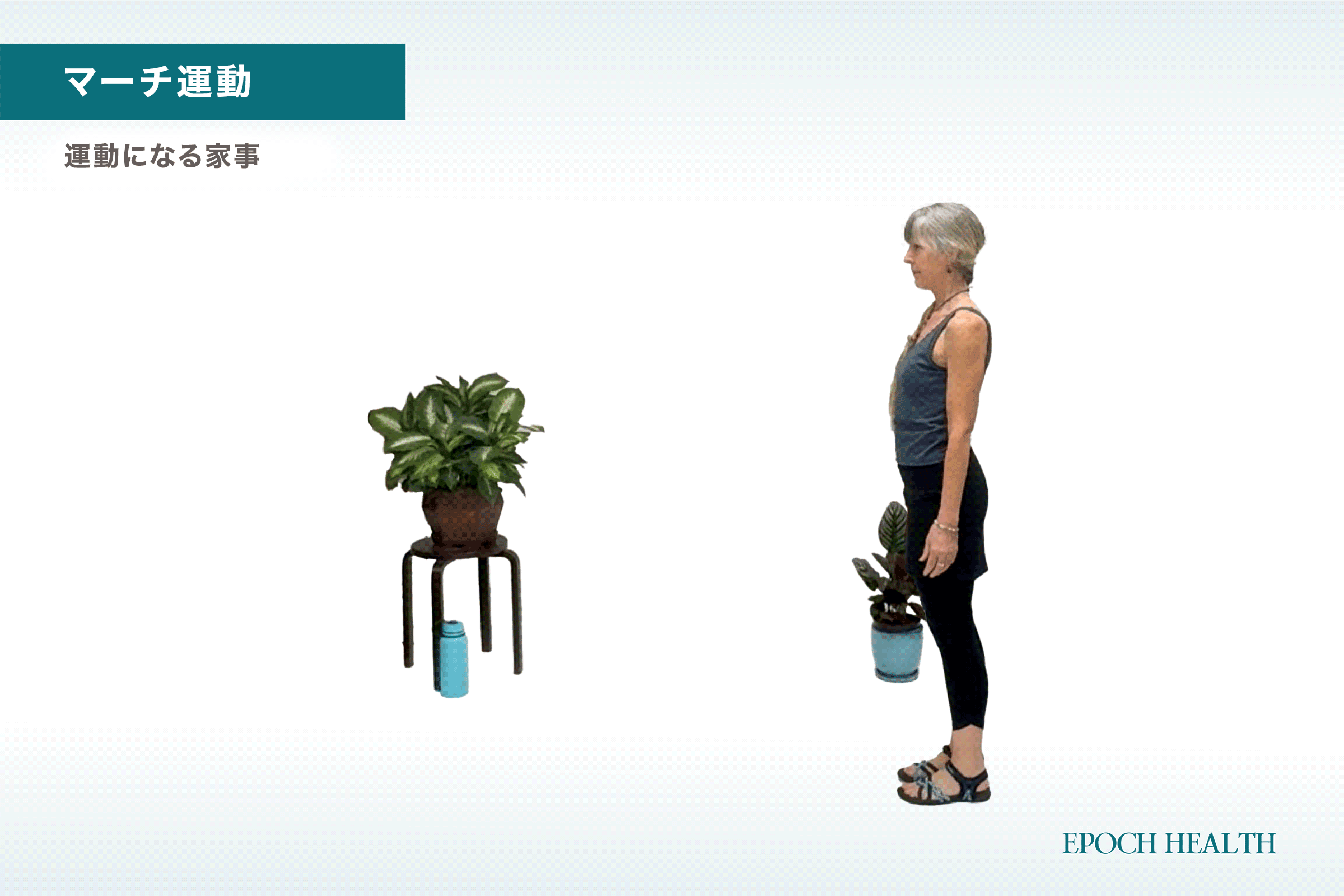 ステップ3:家の中を歩くときに、この「マーチ運動」を取り入れてみましょう。