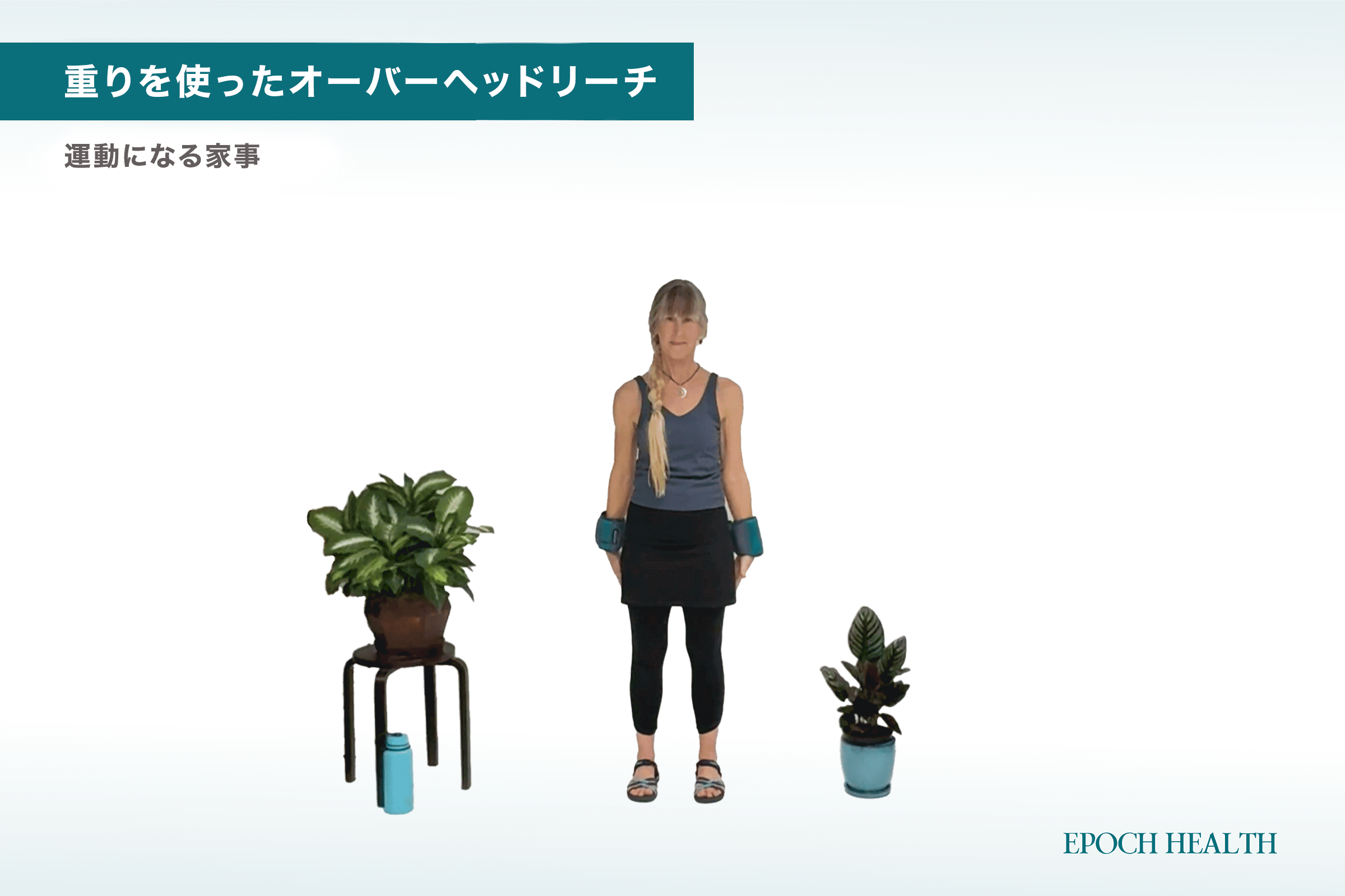 4. 重りを使ったオーバーヘッドリーチ(腕上げ運動)