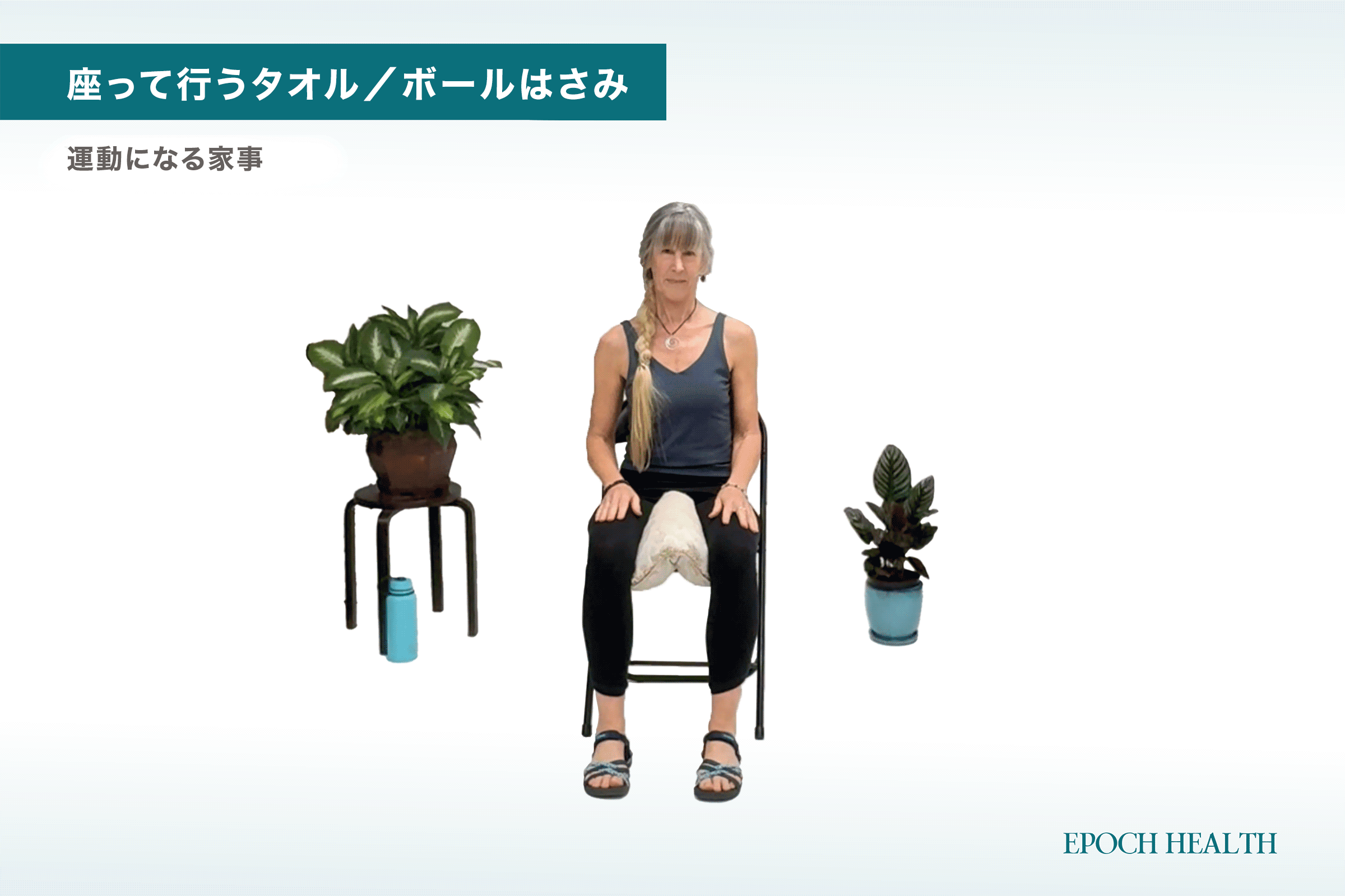 6. 座って行うタオル/ボールはさみ