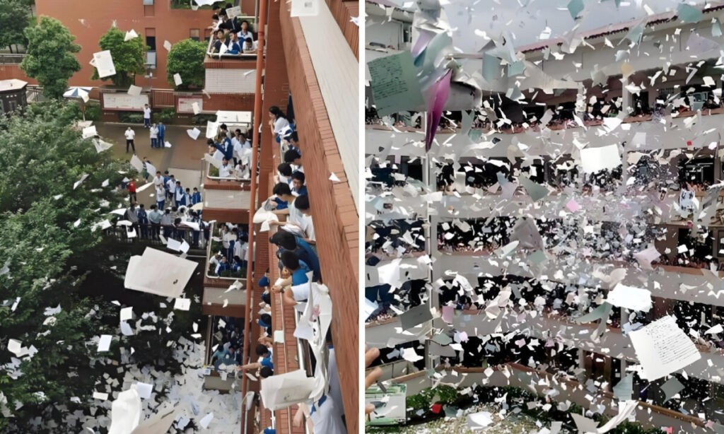 高考までは、まるで命の次に大切な宝物のように扱っていた教科書やノート。しかし試験が終わった瞬間、それらは“燃え尽きた執念”の象徴となり、一転してゴミ同然に扱われる。細かくビリビリに破かれ、頭上から舞い散るその紙吹雪には、勉強への愛情と憎しみの両方が入り混じっているように見える。全力を尽くした末の、叫ぶことすらできない解放感と虚脱だ。その光景を目にすると、見ているこちらまで胸が締めつけられ、ただ、ひと言だけ声をかけたくなる──「本当に、お疲れさま」と。