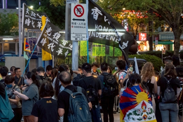 デモの最後、参加者全員で香港の象徴的な歌『願栄光帰香港』を合唱。集会は香港民主化運動のスローガン「光復香港・時代革命(香港を解放せよ・革命の時代だ)」の掛け声とともに締めくくられた。