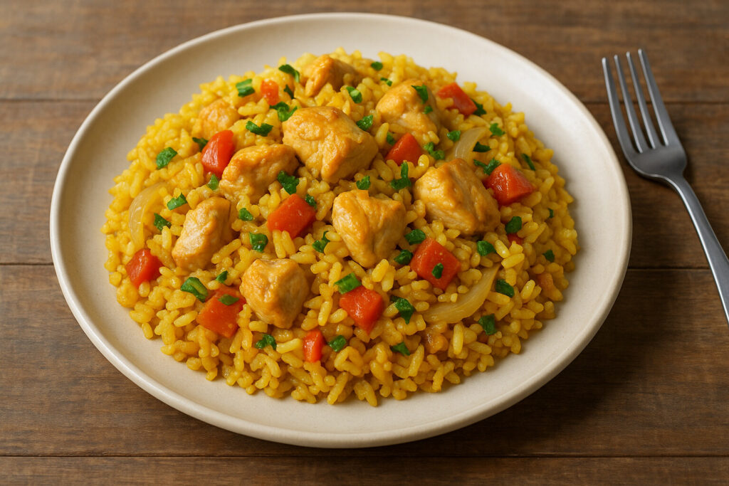 脾胃を温めて湿気を取り除く一品です。ターメリックには抗炎症作用があり、同時に体を内側から温める温陽作用も備わっています。カラーピーマンは胃を潤し、玉ねぎは気の巡りを促進してくれます。