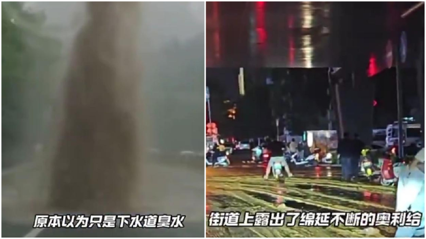 現地報道によると、大雨によって排水が追いつかず、多くのマンホールから糞便が逆流、汚物が勢いよく噴き出した。