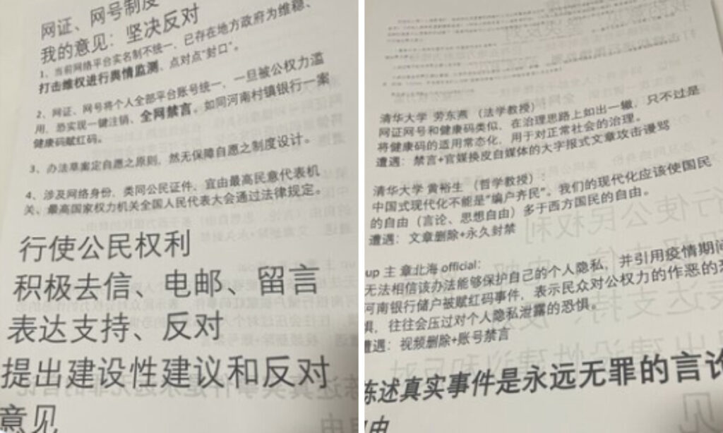 人権活動家の弾圧や異論封じ込めへの悪用を懸念する声も上がるなか、山東省青島市では制度導入に反対するA4サイズのビラが街頭に貼られ、SNSでも拡散。「アカウント統一管理で発言封鎖が容易になる」と警告し、市民に警戒と意見表明を呼びかけた。