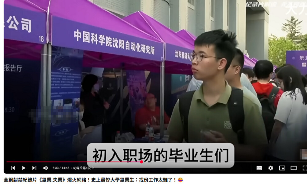 こうした現実を赤裸々に映し出したドキュメンタリー映画『卒業・失業』は、公開直後に中国当局によりネット上から封殺された。雇用不安が社会に広がる中、当局が敏感に反応した形だ。