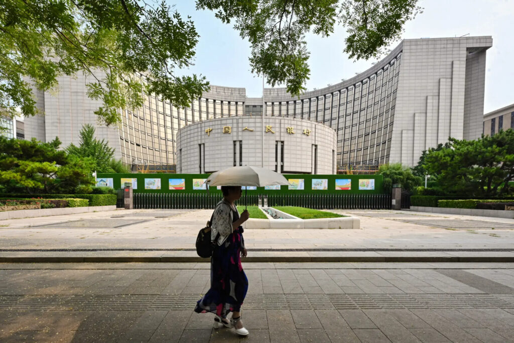 昨年7月9日、中国人民銀行本部前を歩く女性 (Adek Berry/AFP via Getty Images)
