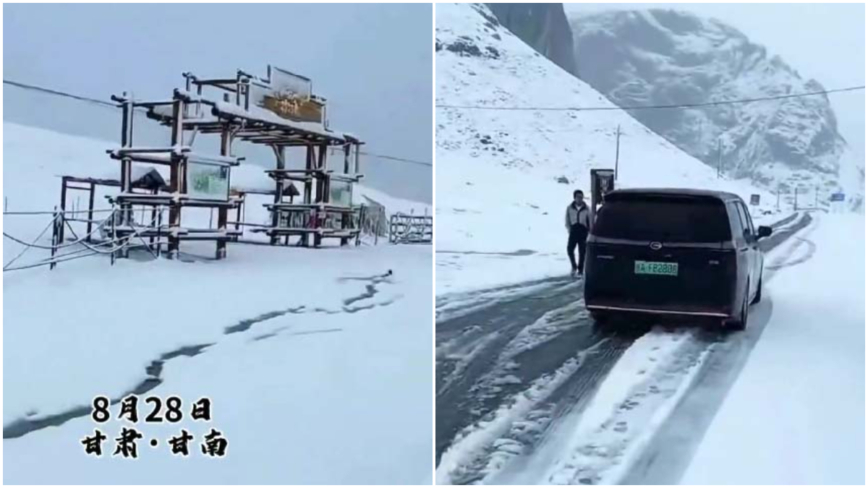 さらに8月28日には、甘粛省甘南(かんなん)自治州でも、大地を覆い尽くすほどの大雪が降った。