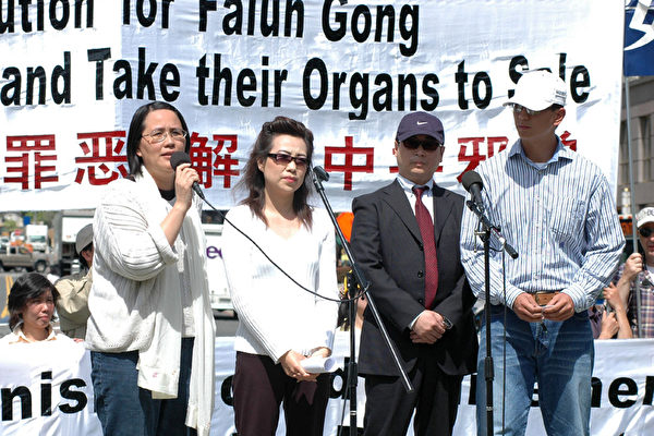 2006年4月20日、中共による生きた人からの臓器収奪の惨事を暴露したアニーさん(左から二番目)とピーターさん(左から三番目)が初めて公の場に姿を現した。(大紀元)