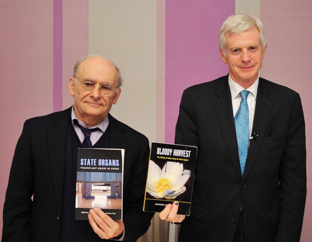 2016年10月30日、カナダの人権弁護士デービッド・マタス氏(左)と元アジア太平洋州担当大臣デービッド・キルガ―氏(右)が韓国ソウルで記者会見を開き、中共による臓器収奪の新たな証拠を公開した。(李裕貞/大紀元)