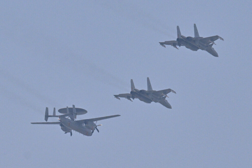 同時にJ-15艦載機の3種類のバリエーションとJ-35が飛行し、航空母艦「福建」での運用が予定されている。ロシアが廃棄した艦載機はいまだに中共海軍空母の主力艦載機であり、これについても中共は「自主開発」と称している。