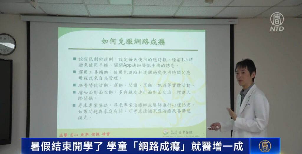 イメージ画像。(N「ネット依存」の克服法について講義する国立台中病院・身心精神科の章秉純医師。(NTD新唐人テレビより)TD新唐人テレビより)
