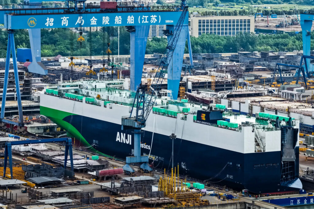 2025年7月21日、中国江蘇省揚州市儀徴にある招商産業金陵造船所で船舶の建造が行われている。STR /AFP via Getty Images