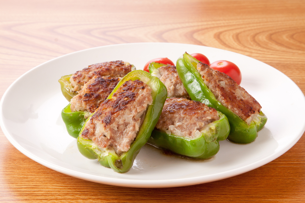 レシピ:里芋と牛ひき肉のピーマン詰め(2人分)