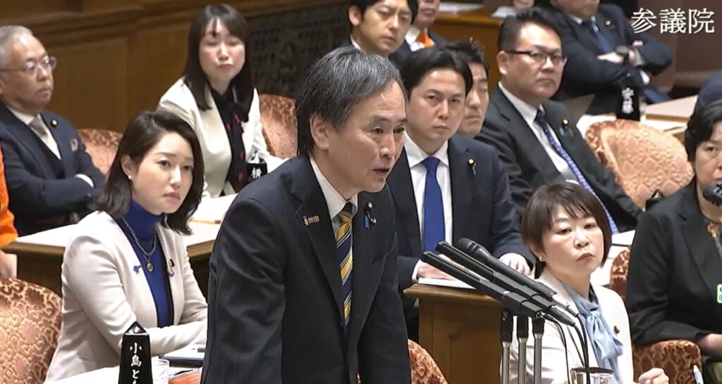 2025年11月14日、参議院予算委員会で質疑を行う国民民主党の川合孝典議員(参議院・インターネット審議中継)