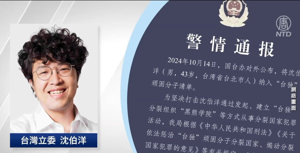 最初に標的となったのは、台湾民進党の立法委員(日本の国会議員に相当)である沈伯洋(しん・はくよう)氏だった。沈氏は中共による台湾への浸透工作や情報戦を長年研究・警告してきた対中警戒派だ。中国・重慶市公安局は先月、沈氏を「国家を分裂させる犯罪活動」に従事したとして立件し、捜査することを決めたと発表した。