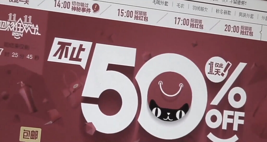 ダブルイレブンの大型割引を告知する中国のネット通販サイトの画面、イメージ画像(映像よりスクリーンショット)