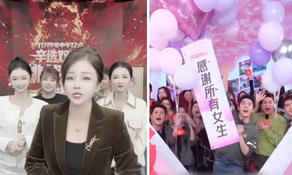 ライブ配信でダブルイレブンのセールを盛り上げる配信チーム、イメージ画像(映像よりスクリーンショット)