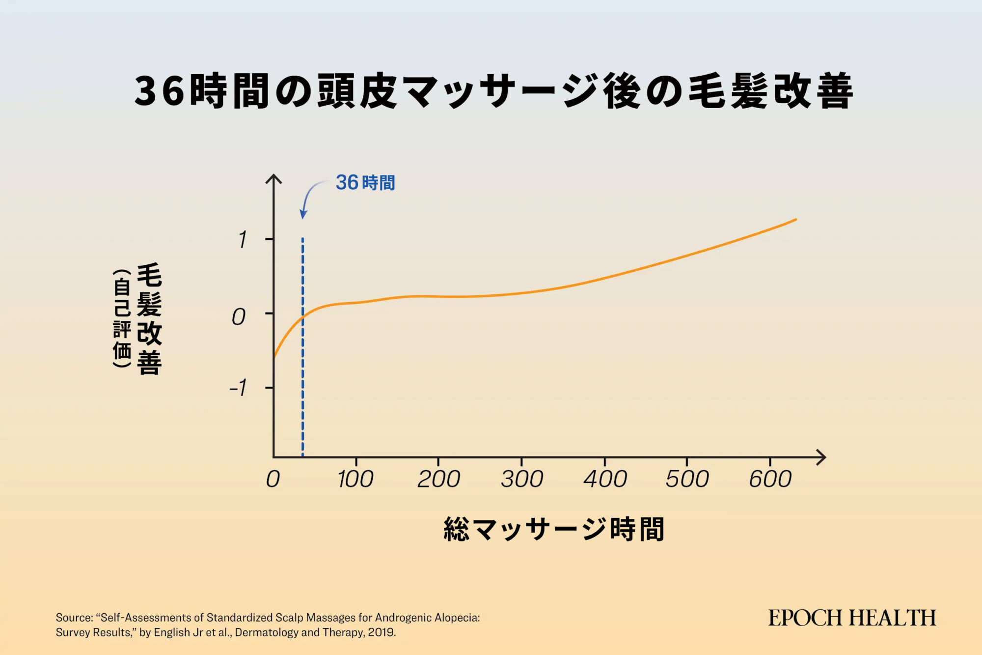 男性型脱毛症(進行性の永久脱毛)患者の327人を対象とした研究では、平均7か月の毎日11~20分の頭皮マッサージ後、「脱毛の進行が止まった」または「発毛の兆しが見られた」と報告しました。研究者たちは、平均で累計36時間のマッサージ後に改善を感じ始めたと指摘しました。