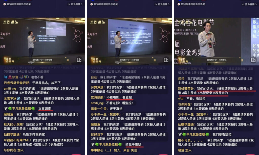 『中国電影金鶏奨』の授賞式ライブ配信のコメント欄には、真相追及の投稿が一気に溢れた。