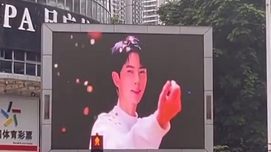 中国・広西省の街頭スクリーンに投影された于朦朧の写真。(映像よりスクリーンショット)