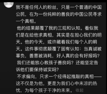 ただ、一人の純粋で善良な中国人に起きたことの“真相”を求めているだけです。