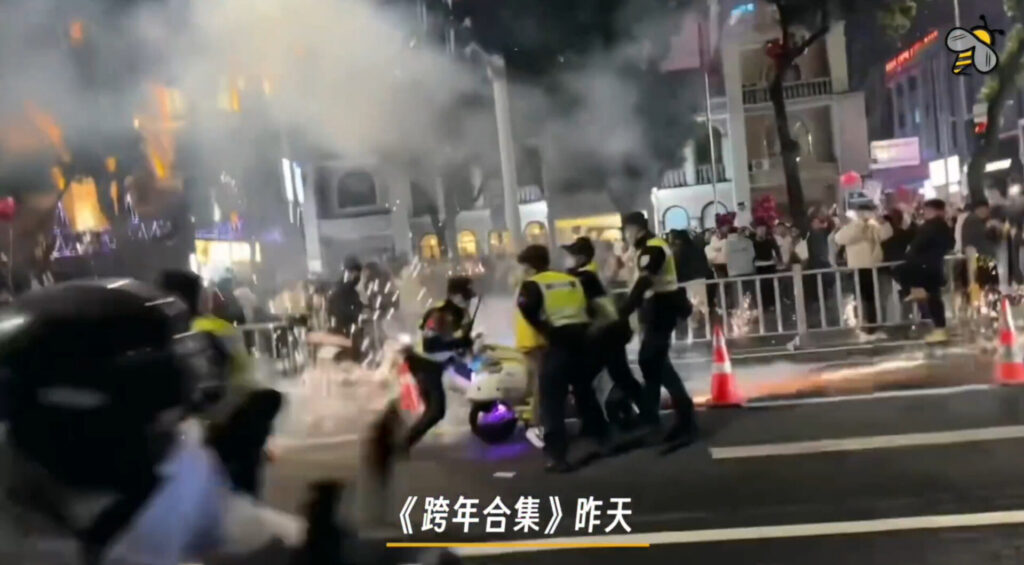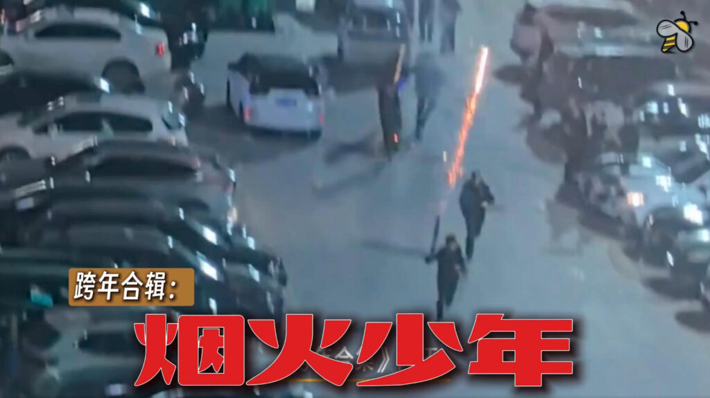 (年越しの夜、中国各地の街中で花火を上げる若者の様子。こうした行為を理由に、複数の地域で身柄を拘束された例が伝えられている。2025年12月31日、中国国内の抗議行動を記録するXアカウント「昨天」@YesterdayBigcat より)