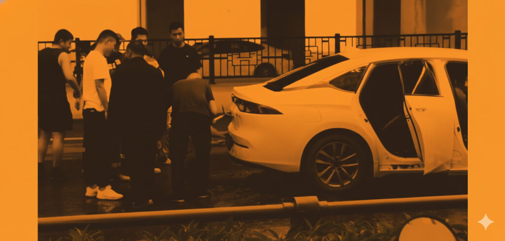 中国で発生した電気自動車(EV)の火災現場において、消防隊員が消火活動をするのに先立ち、車体に付された企業ロゴを剥がす行為に及んだ映像が拡散した。炎が上がる中で行われたこの行動は、通常の消防活動の常識から著しく逸脱しており、多くの人々に強い違和感を与える。