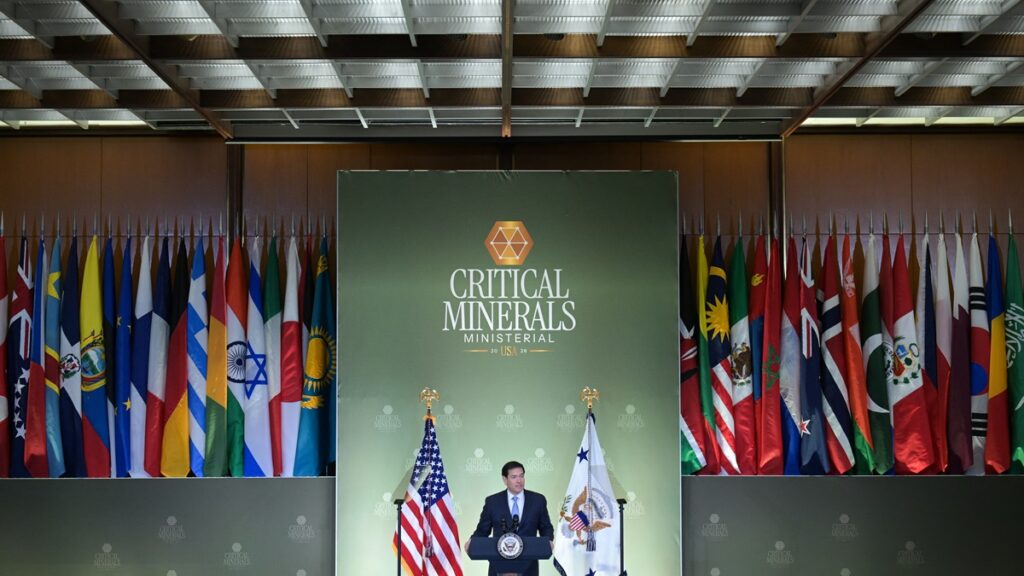 ルビオ国務長官は中国の名を直接挙げなかったものの、重要鉱物が「特定の一国に高度に集中している」現状を指摘し、それが「地政学における圧力手段として利用されている」と述べた。
