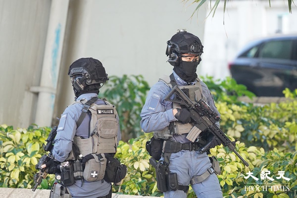 対テロ特殊部隊が銃を持って待機(余鋼/大紀元)