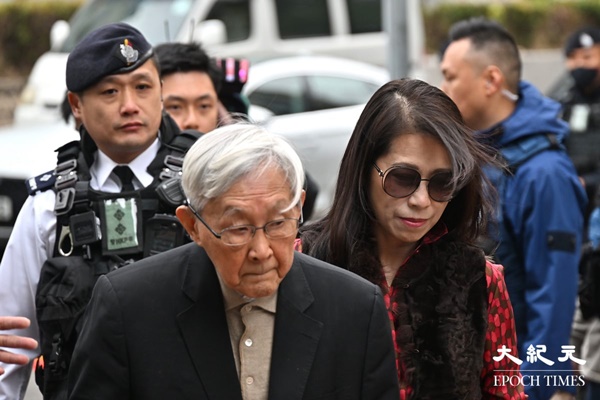 香港カトリック教区の退任司教ジョセフ・ゼン枢機卿(左)とジミー・ライ氏の妻リー・ユンチン氏(吳銳略/大紀元)