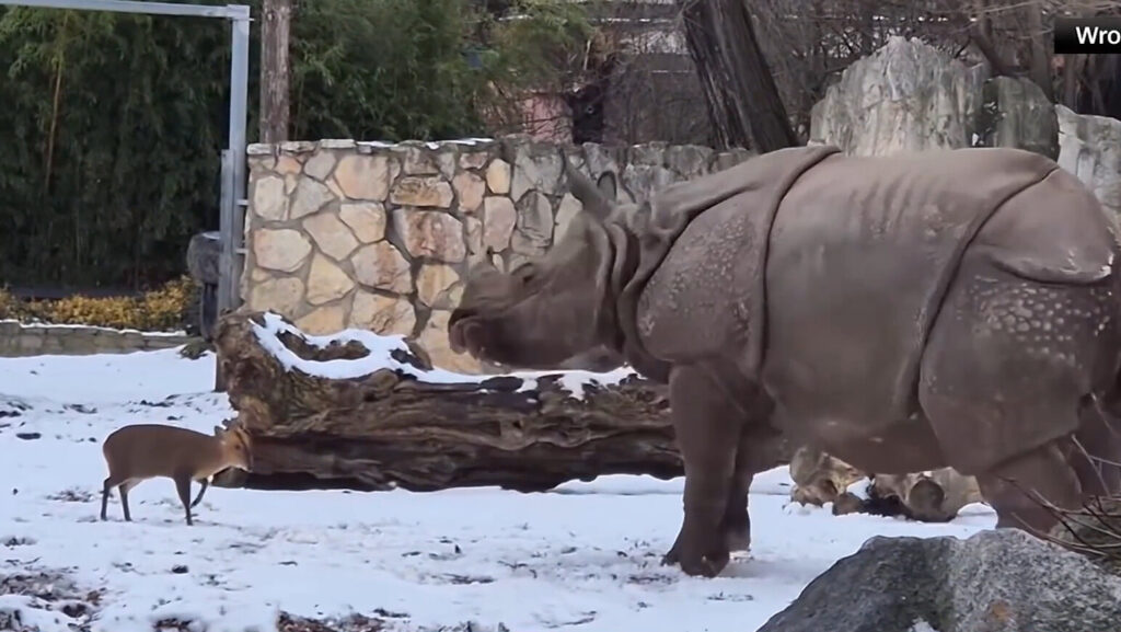 1月中旬、ポーランドのヴロツワフ動物園で、小さなキョンがサイの飼育エリアに入り込んで、自分の100倍以上の重さがある犀に対しても、縄張りした一幕があった。二匹のやり取りは、多くの人を笑顔にした。