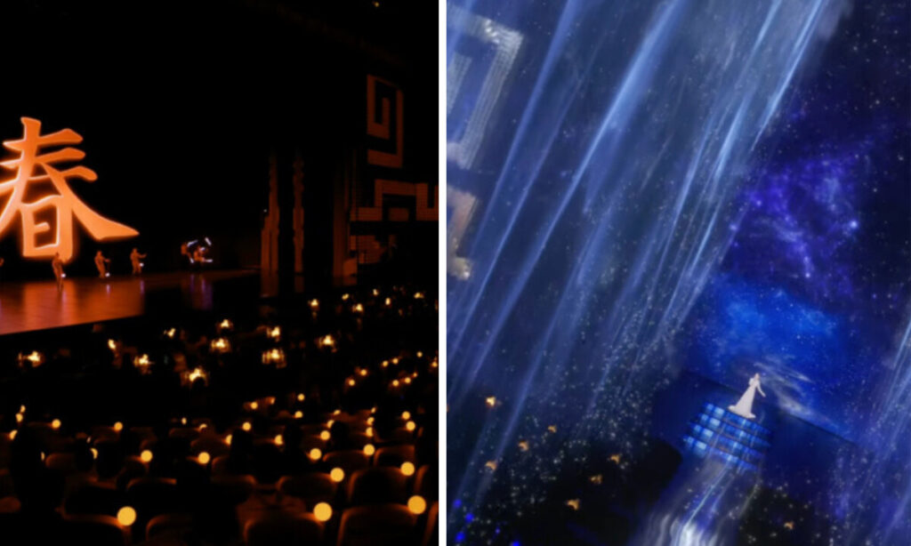 舞台装置、照明、出演者の衣装に至るまで全体に寒色系が多く、「いつもの華やかさがない」「どこか暗い印象」といった声が中国のSNSで広がっている。