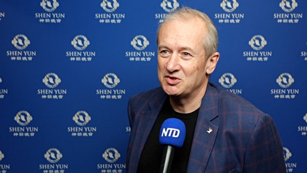 2026年2月28日の夜、企業オーナーであるデル・クリストファー氏は、英国のハイ・ウィッカム、スワン劇場で神韻の公演を鑑賞した(NTDテレビ)
