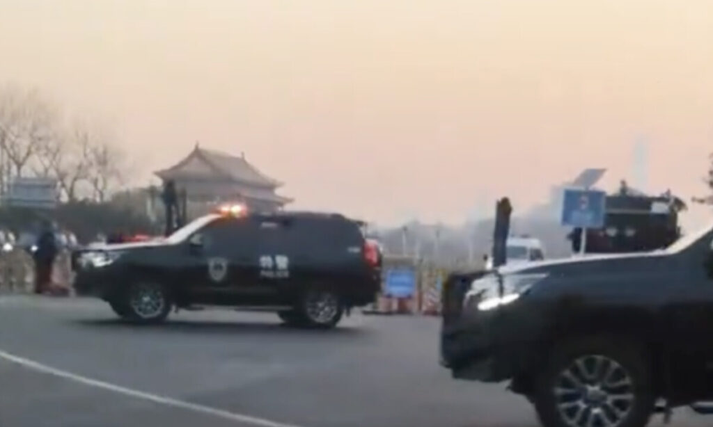 3月29日には、市内を移動していた乗客が、北京のメインストリート・長安街での警備体制を撮影した。映像では、短い間隔で警察が配置され、多数の警察車両が集結するなど、厳戒態勢が敷かれている様子が確認できる。