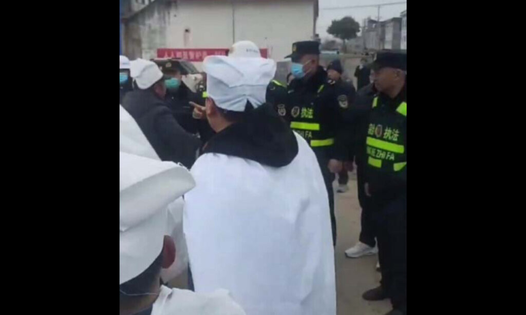 江蘇省連雲港市で、音楽を流していた葬列で取り締まりを受ける場面を確認した。地元では、音楽や伝統楽器の使用を制限している、だが約2千元(約4万円)を支払えば例外的に認められるという。
