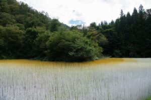 竹や羽毛などの天然素材を扱う台湾人アーティスト・游文富氏が、長野県で開催されている「北アルプス国際芸術祭」に参加した。色付けされた50万本の竹ひごを稲田に立つように入れて、アート作品『種一片心田』(心田を耕す)を創り上げ