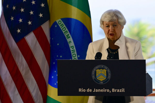 財務長官は、孤立主義は「アメリカと世界を悪化させた」と述べ、トランプ氏の高関税案との対立が浮き彫りになっている。