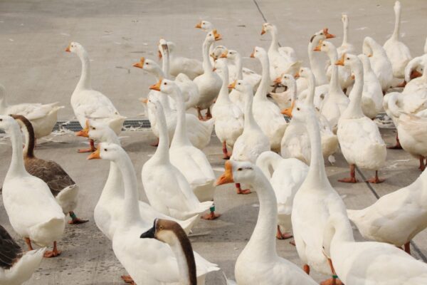 捕まえようとしていた獲物が逃げるのを見て、遼の兵士たちは武器と盾を次々と落とし、アヒルとガチョウを追いかけ水辺へ向かいました。アヒルとガチョウは逃げるために水の上を泳ぎ、それを追いかける遼の兵士たちも各々水中へと入っていきました。