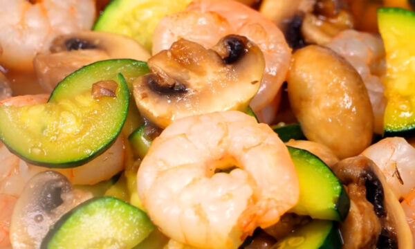 【ササっと簡単中華風】ズッキ–ニ&エビ&マシュルームの中華風炒め!超簡単