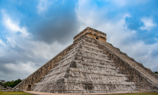 マヤ文明のピラミッドに登ったメキシコ人女性と、それを見守る数百人の観光客