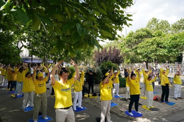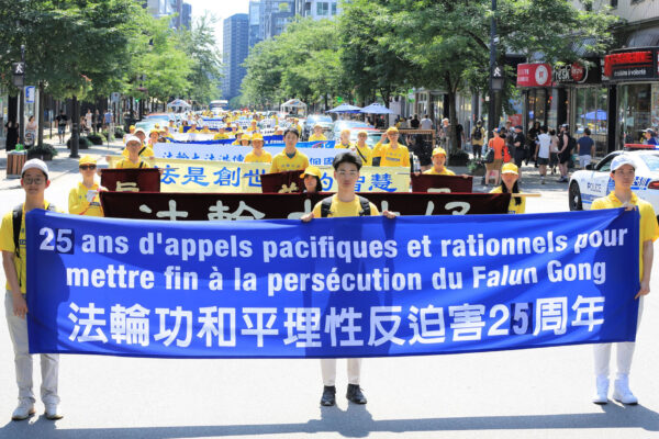 20日、横浜で法輪功学習者が1999年「4・25」平和的陳情から26年目を記念しパレードを実施。中国共産党政権による迫害政策の停止と信仰の自由を訴え、沿道に平和のメッセージを届けた。