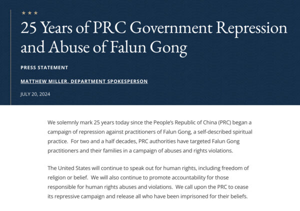 米国務省は、北京当局とその「代理人」による、神韻芸術団を標的とした妨害行為を非難した。同省は表現の自由を保障する措置を求めている。中国共産党は過去25年間にわたり、法輪功を根絶しようとしてきた。