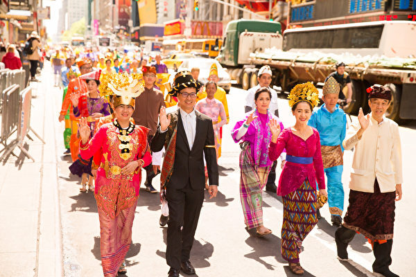 NYで法輪大法25周年記念パレード 華やかな民族衣装で参列
