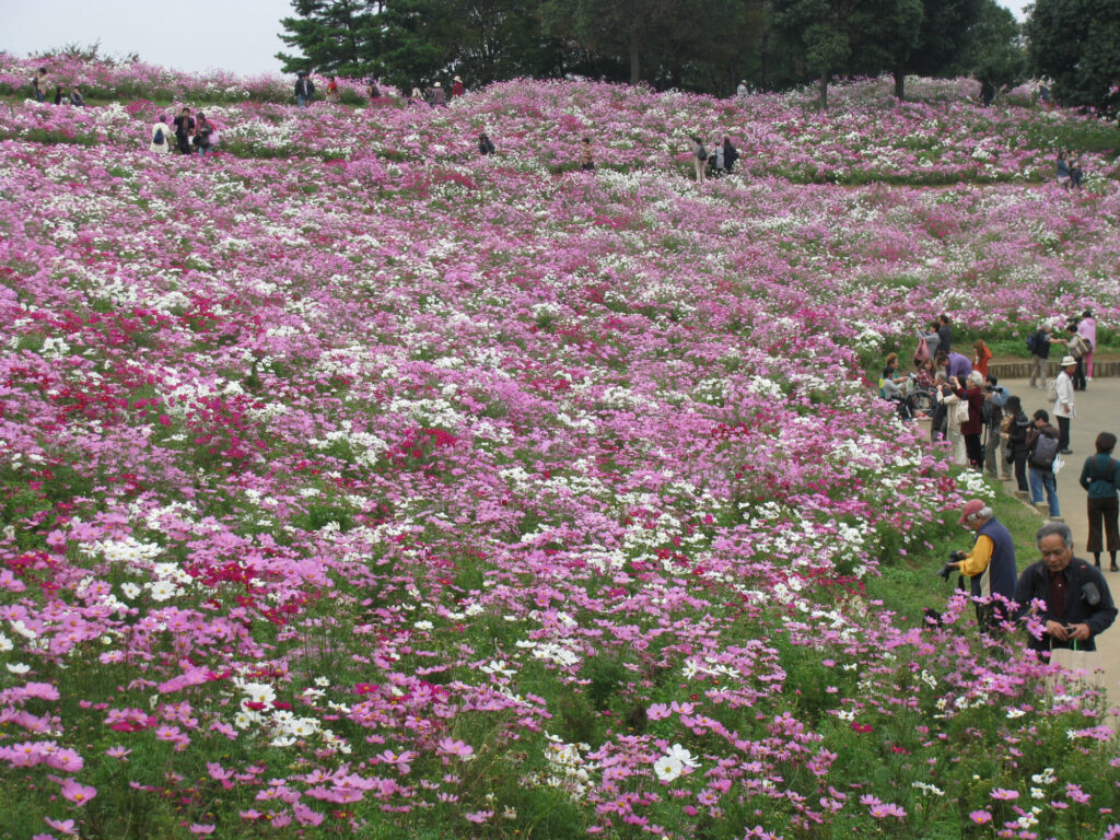 岡山県真庭市の北房コスモス広場に100万本以上のコスモスが咲き誇る西日本最大級のコスモス畑がある。