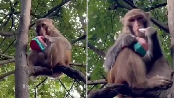 「女性の絶望の声がなぜか楽しい」?中国の公園でサルによる「かばん強奪事件」。