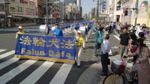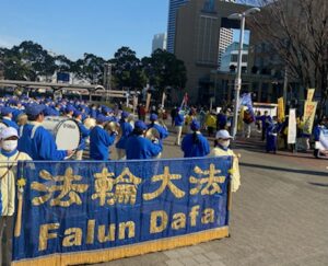日本の法輪功学習者が20日、横浜でパレードを行った。「真・善・忍」の理念を掲げ、天国楽団と共に中国共産党による迫害停止と信仰の自由を訴えた。
