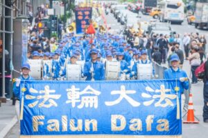 世界法輪大法デーを祝う法輪功学習者およそ5千人はニューヨーク・マンハッタンで盛大なパレードを行い、通行人にひとときの安らぎを与えた。
